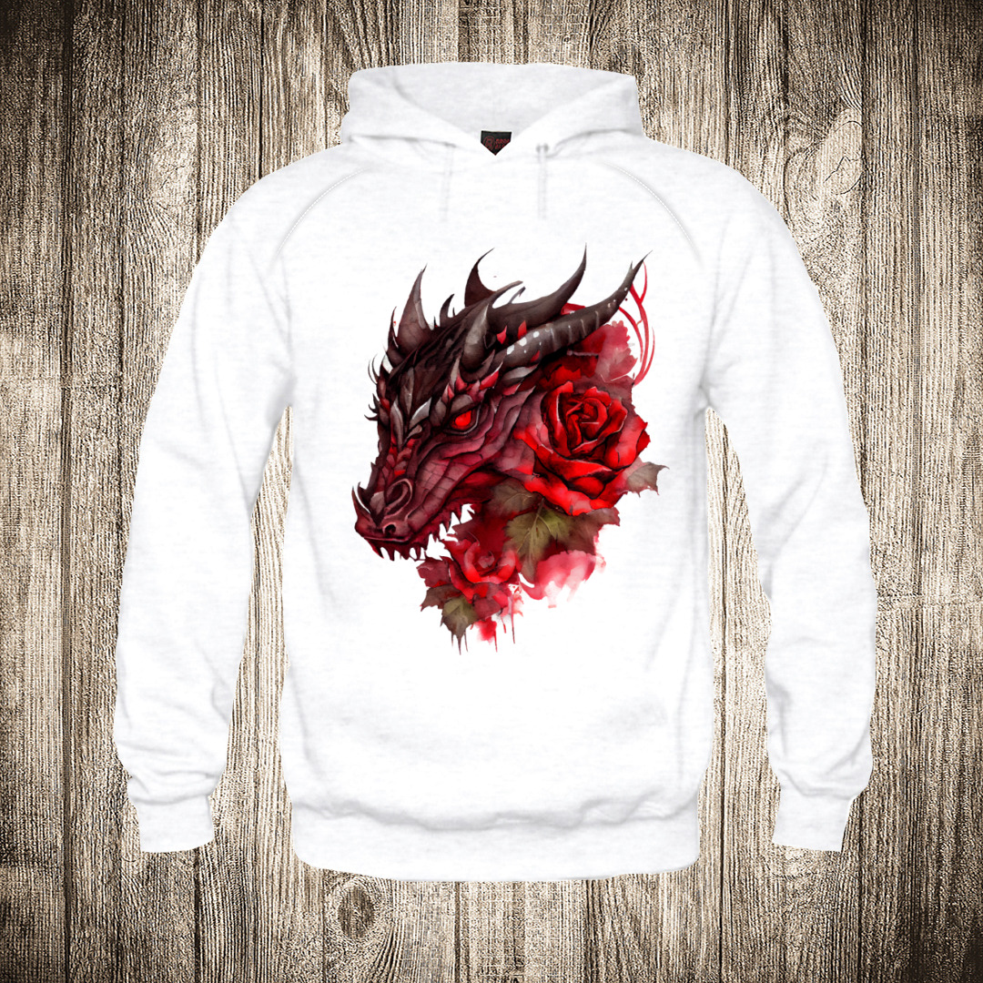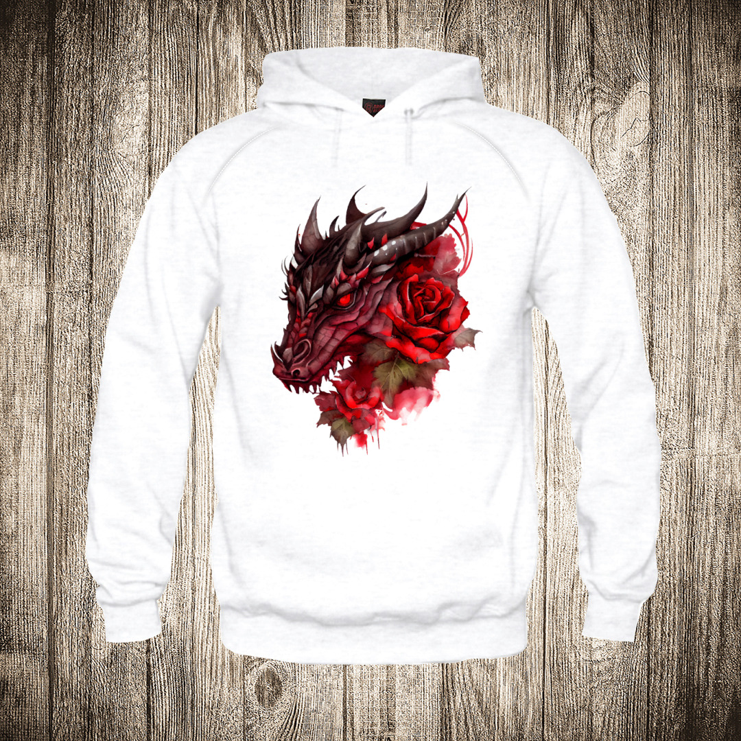 duks sa kapuljacom boja bela slika zmaj i cvece vodene boje