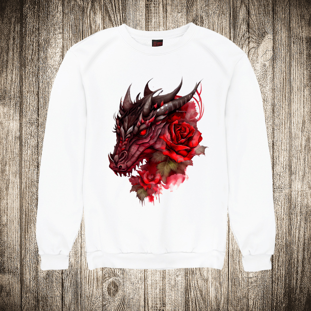 duks bez kapuljace boja bela slika zmaj i cvece vodene boje