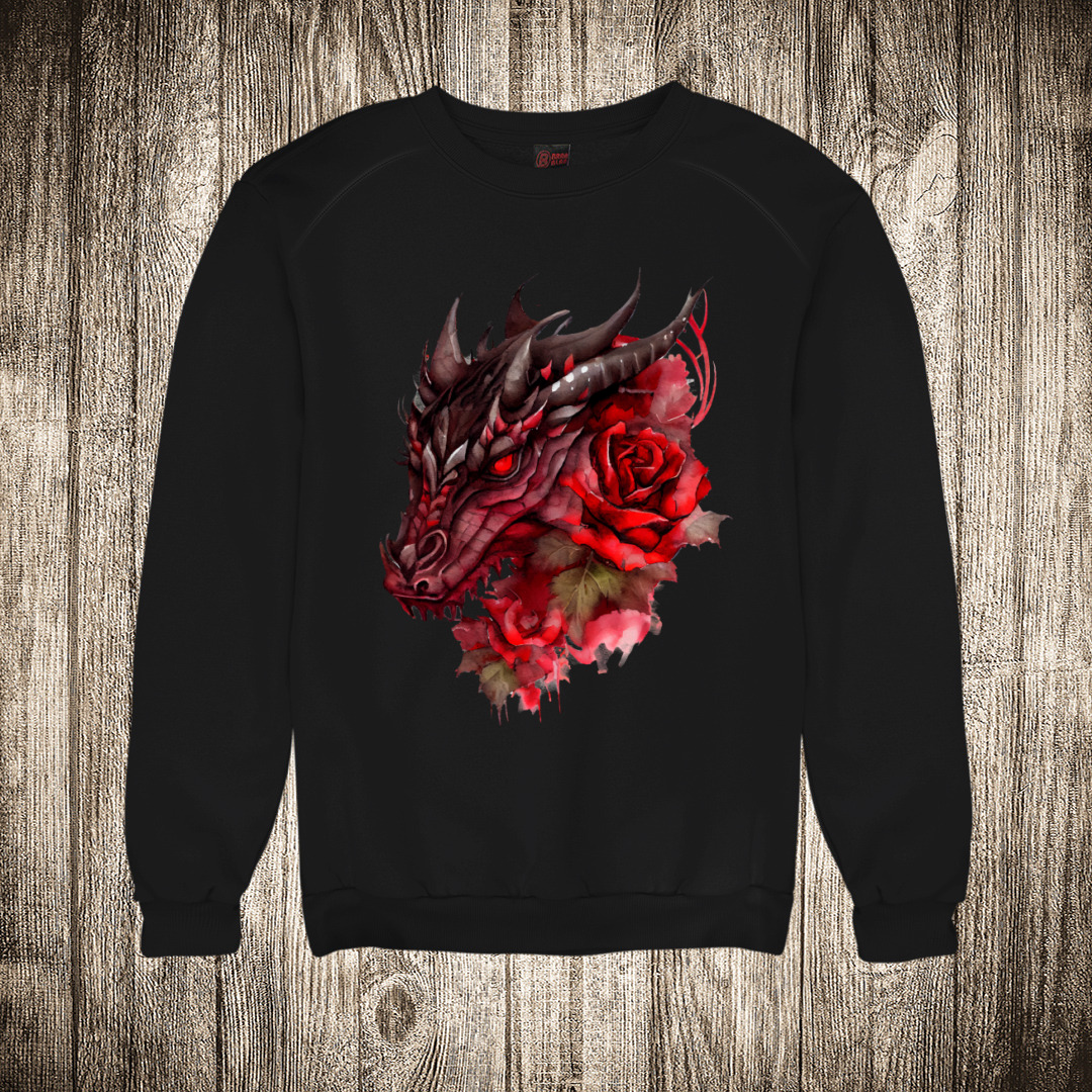 duks bez kapuljace boja crna slika zmaj i cvece vodene boje