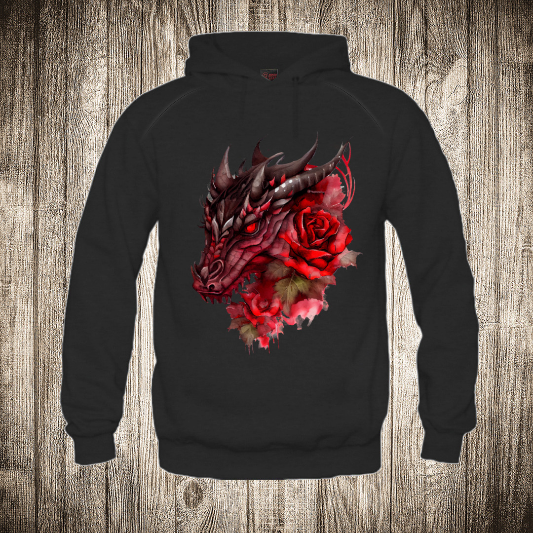 duks sa kapuljacom boja crna slika zmaj i cvece vodene boje